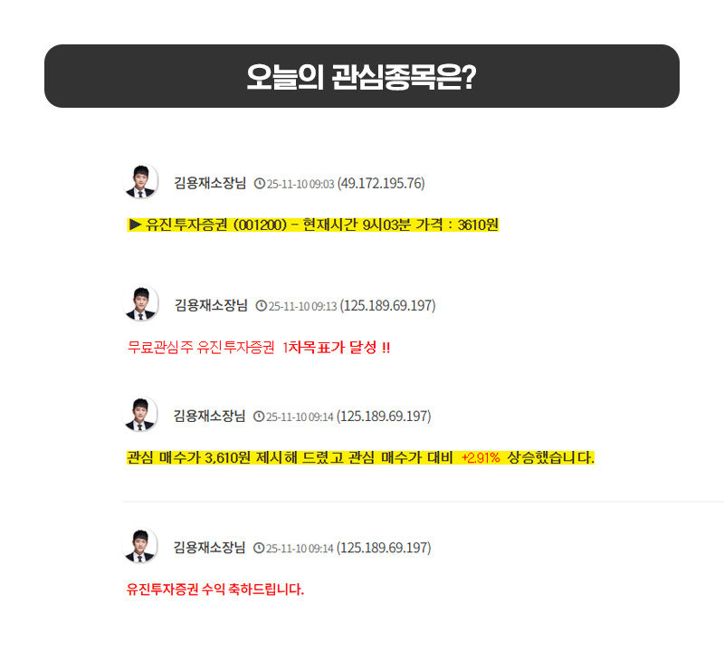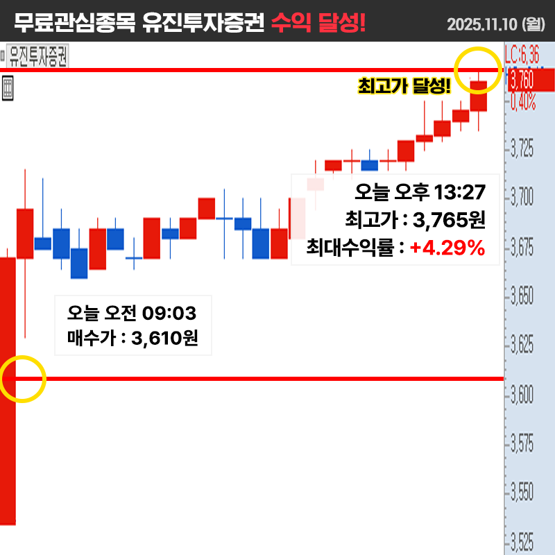 무료관심주 유진투자증권 1차목표가 달성 !!