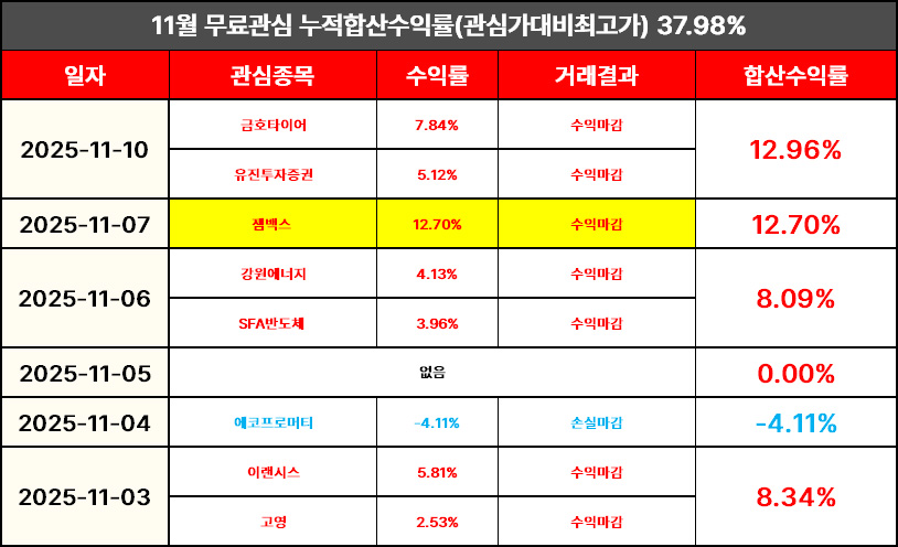 장 마감 후 무료관심종목 결산내역 올려드리도록 하겠습니다.