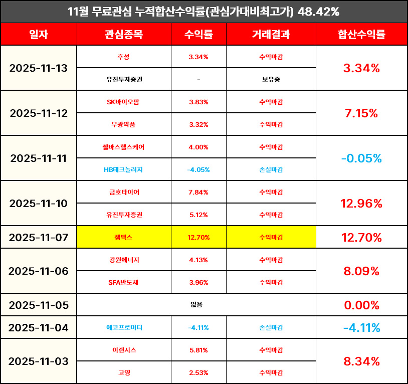 장 마감 후 무료관심종목 결산내역 올려드리도록 하겠습니다.