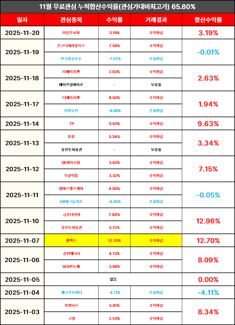 장 마감 후 무료관심종목 결산내역 올려드리도록 하겠습니다.