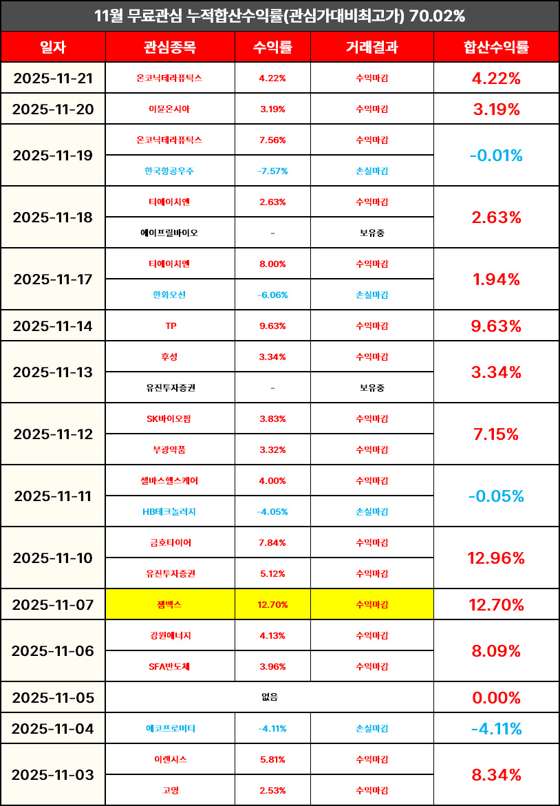 장 마감 후 무료관심종목 결산내역 올려드리도록 하겠습니다.