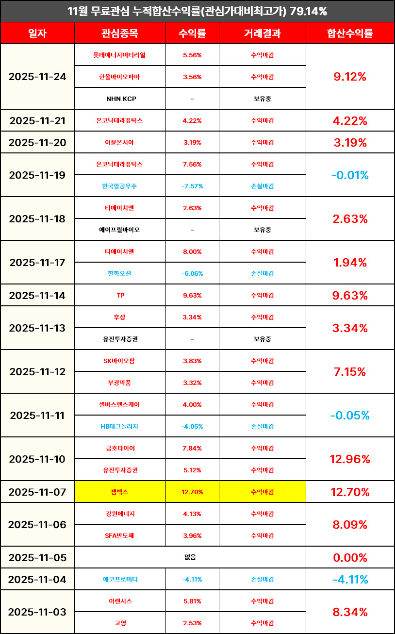 장 마감 후 무료관심종목 결산내역 올려드리도록 하겠습니다.