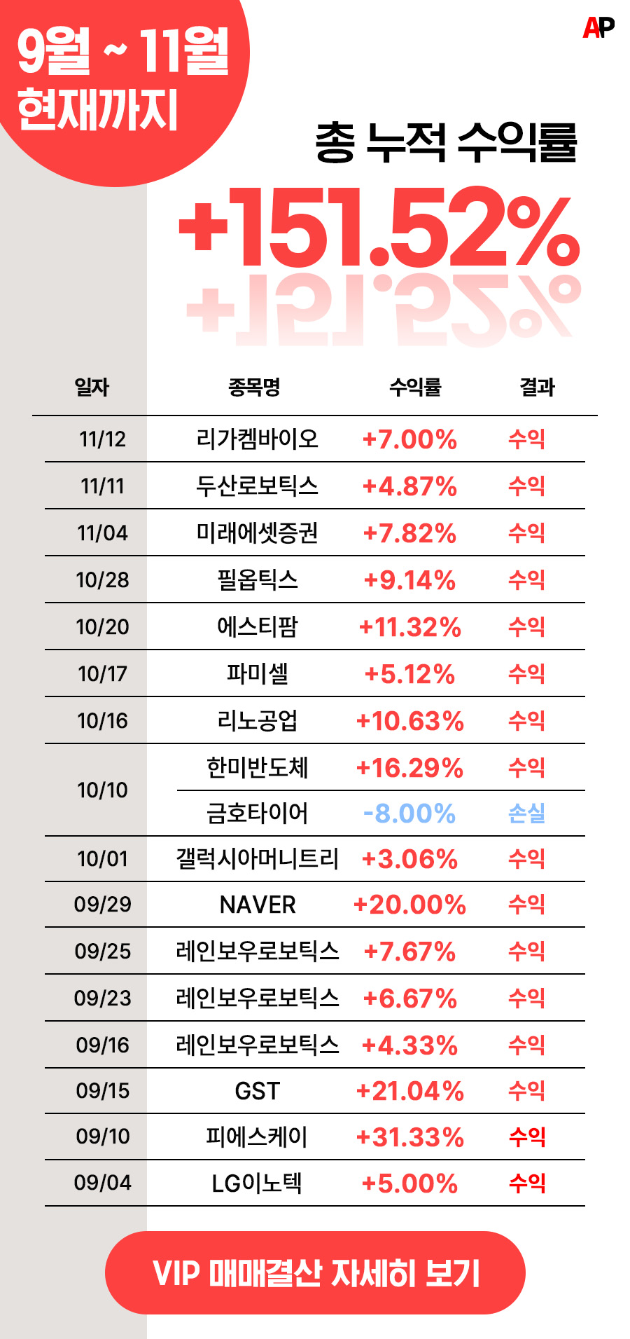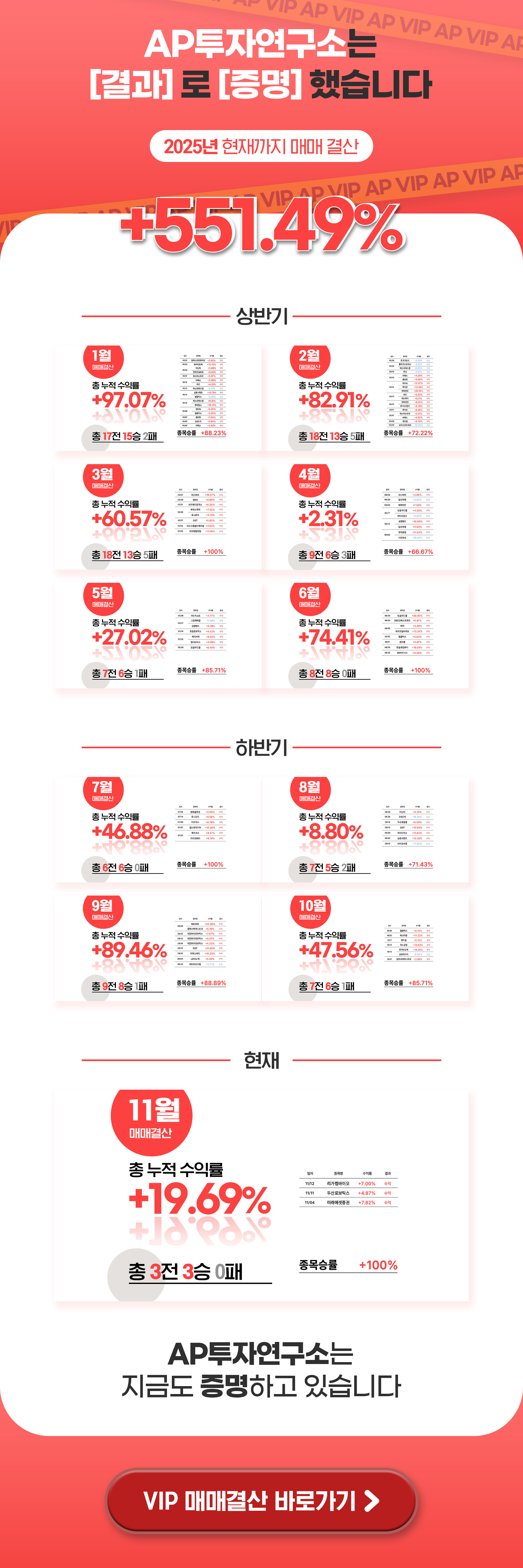 그리하여 현재 저희 AP 투자연구소에서는 일반회원 이외에 따로 제가 운영하는 V.I.P 회원들을 모집하여 종목추천을 해드리고 있습니다.