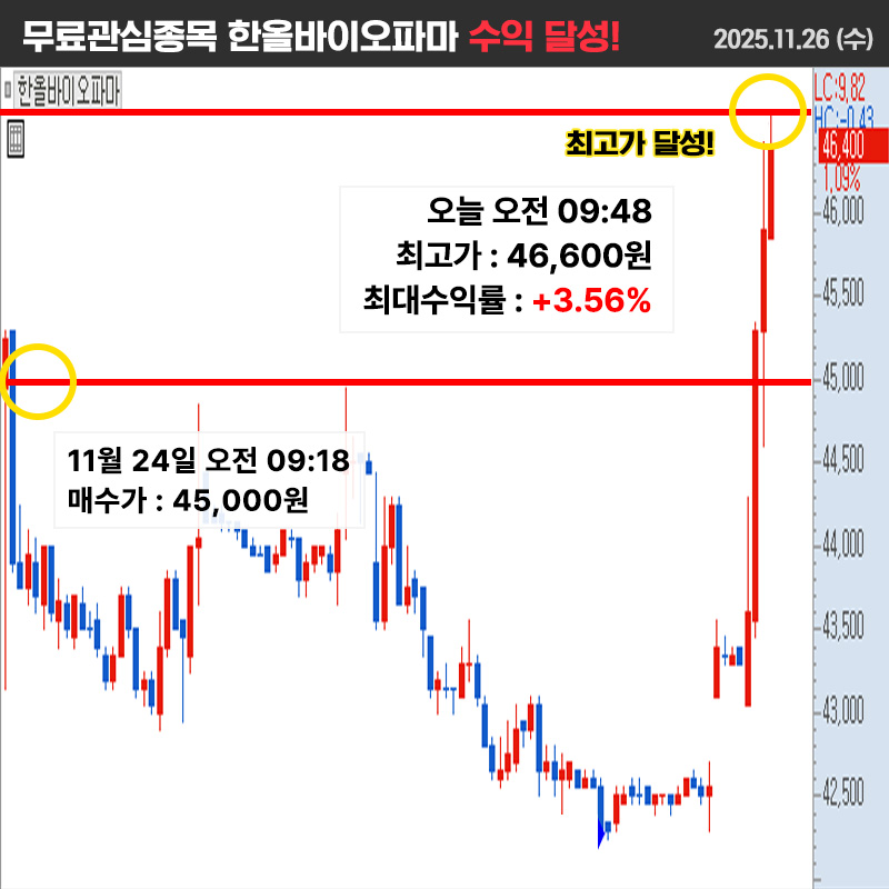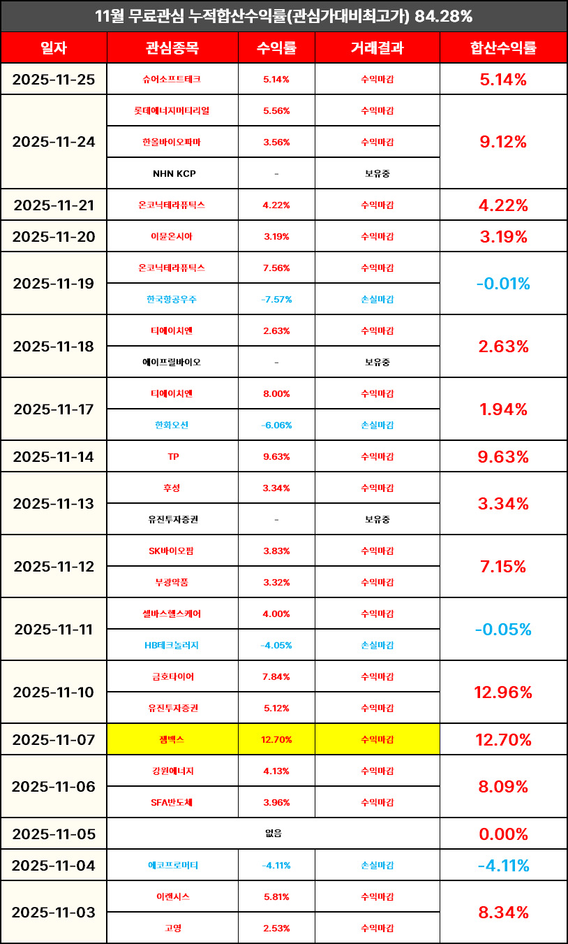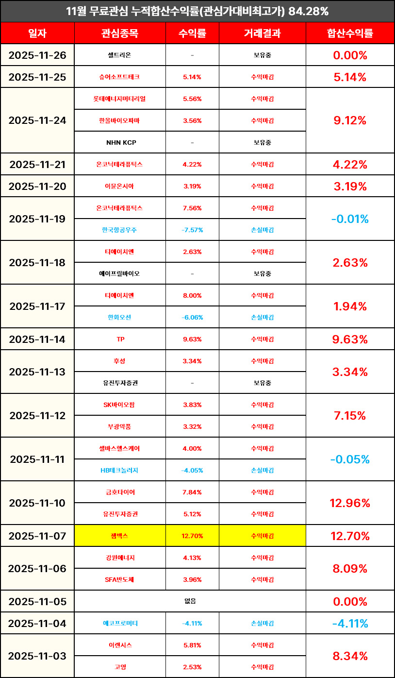 장 마감 후 무료관심종목 결산내역 올려드리도록 하겠습니다.