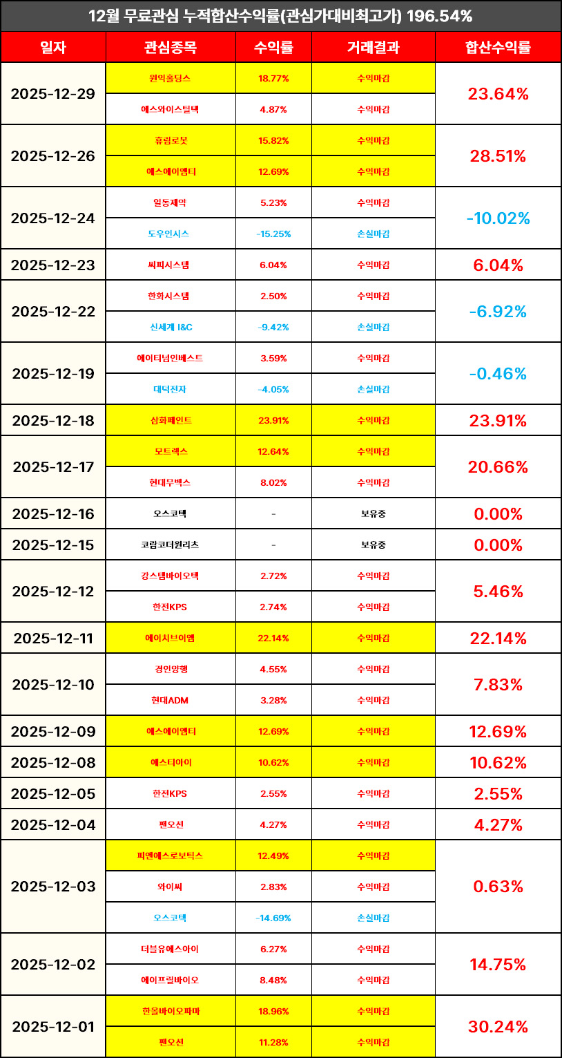 장 마감 후 무료관심종목 결산내역 올려드리도록 하겠습니다.