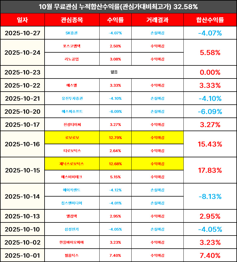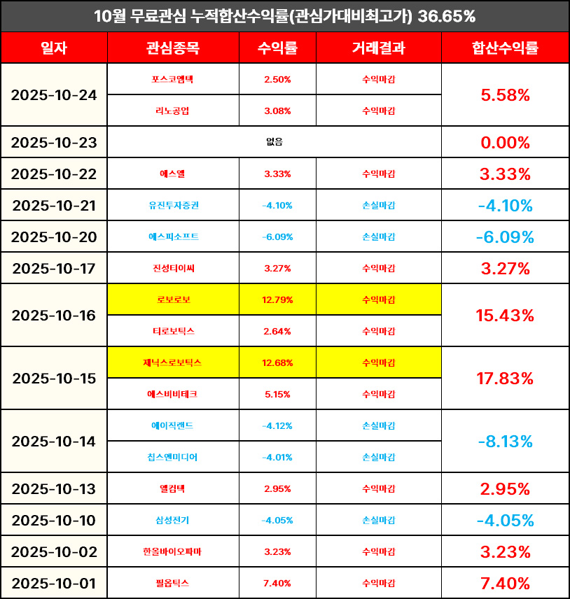 장 마감 후 무료관심종목 결산내역 올려드리도록 하겠습니다.