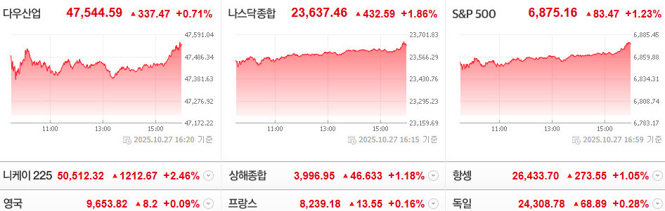 이에따라 美 증시는 물론 아시아 증시가 전체적으로 사상 최고치를 갈아 엎고있는 상황입니다.