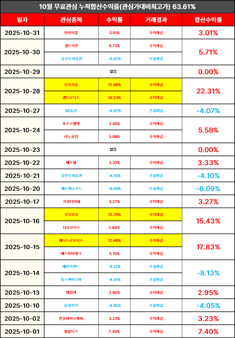 장 마감 후 무료관심종목 결산내역 올려드리도록 하겠습니다.