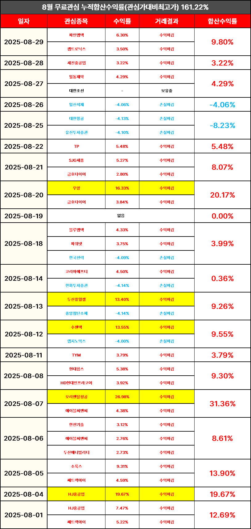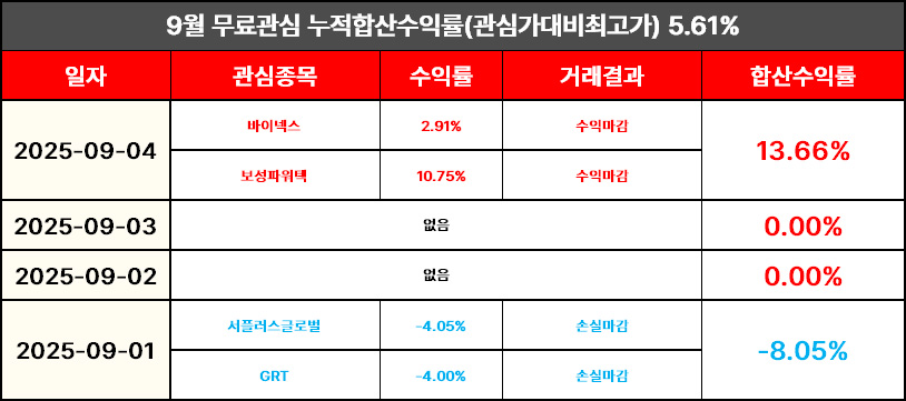 장 마감 후 무료관심종목 결산내역 올려드리도록 하겠습니다.
