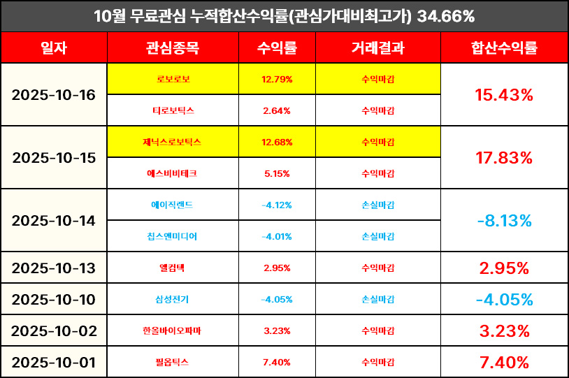 장 마감 후 무료관심종목 결산내역 올려드리도록 하겠습니다.
