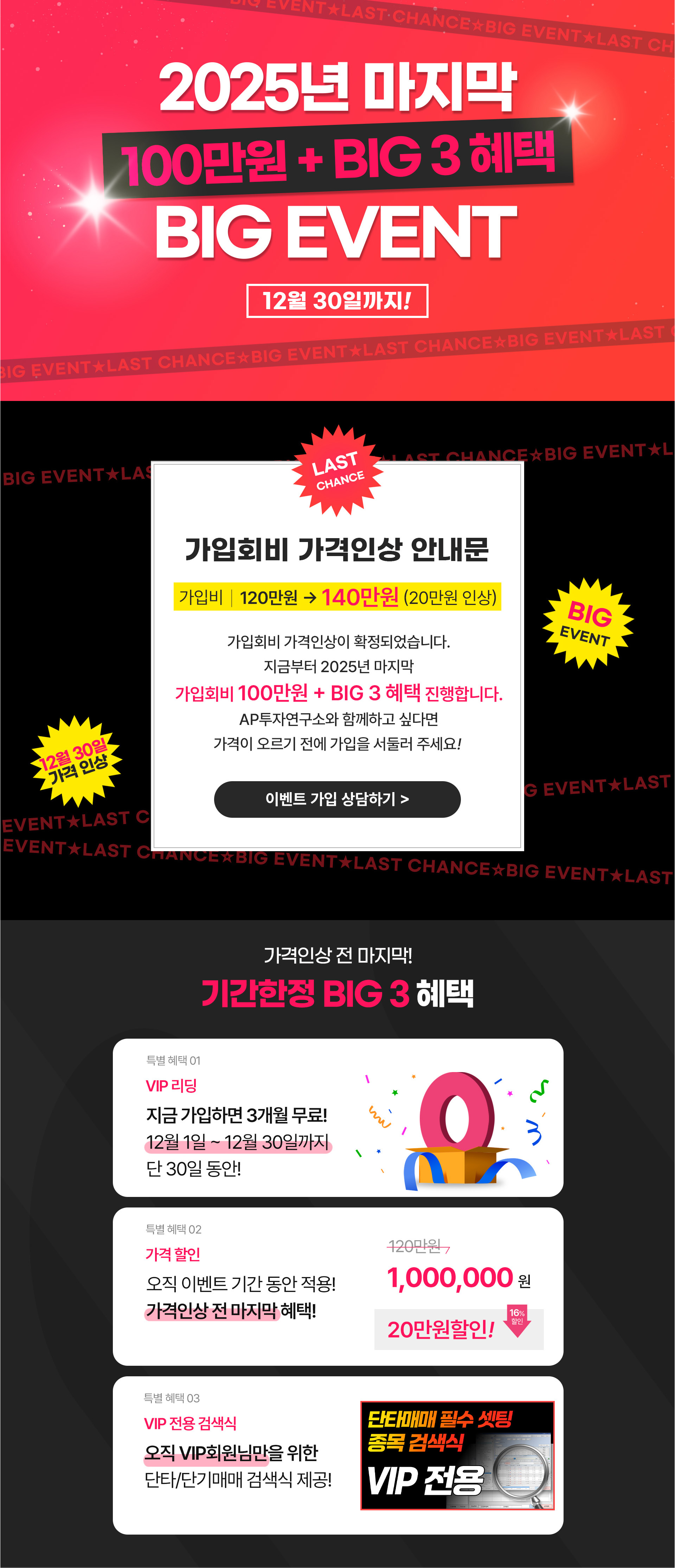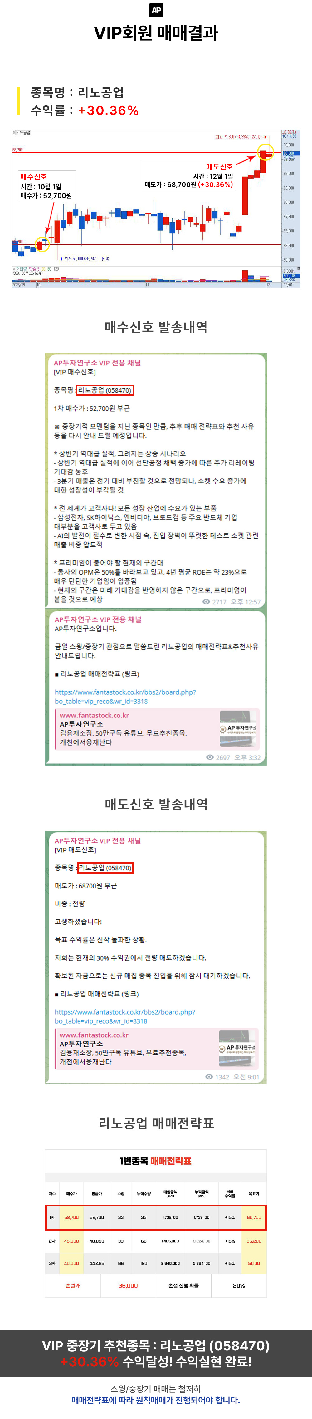 그리하여 현재 저희 AP 투자연구소에서는 일반회원 이외에 따로 제가 운영하는 V.I.P 회원들을 모집하여 종목추천을 해드리고 있습니다.