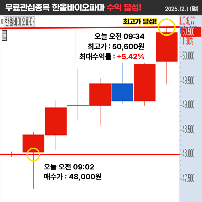 관심 매수가 48,000원 제시해 드렸고 관심 매수가 대비 +3.54% 상승했습니다.