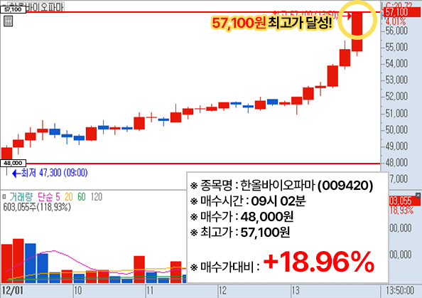 무료관심주 한올바이오파마 1차목표가 달성 !!