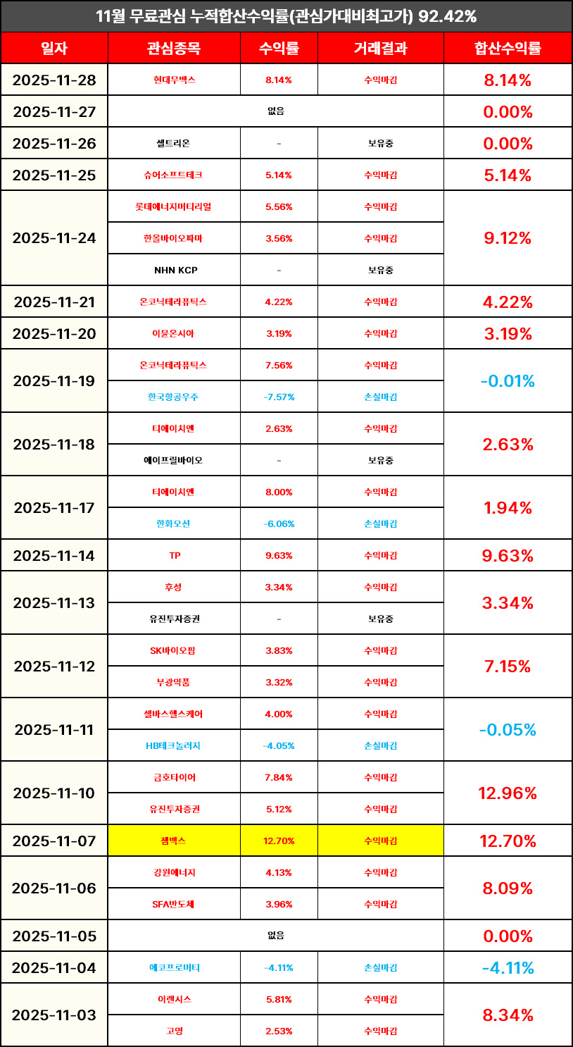 장 마감 후 무료관심종목 결산내역 올려드리도록 하겠습니다.