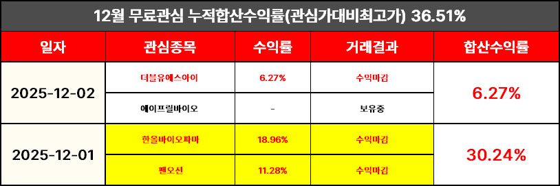 12월 1일 무료관심종목