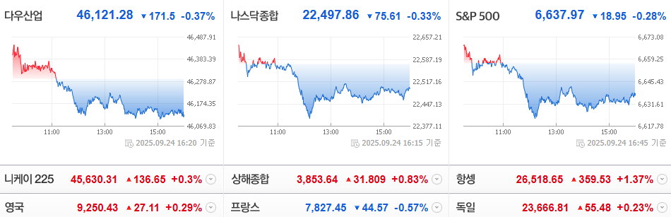 미국의 기준금리 인하가 연속적으로 일어나지 않을 가능성, 셧다운 우려, AI 고평가 인식 등으로 투심이 떨어지며 차익실현이 출회되고 있는데요