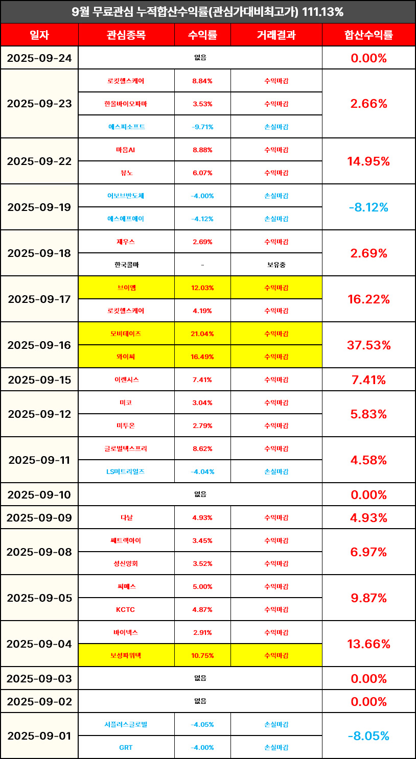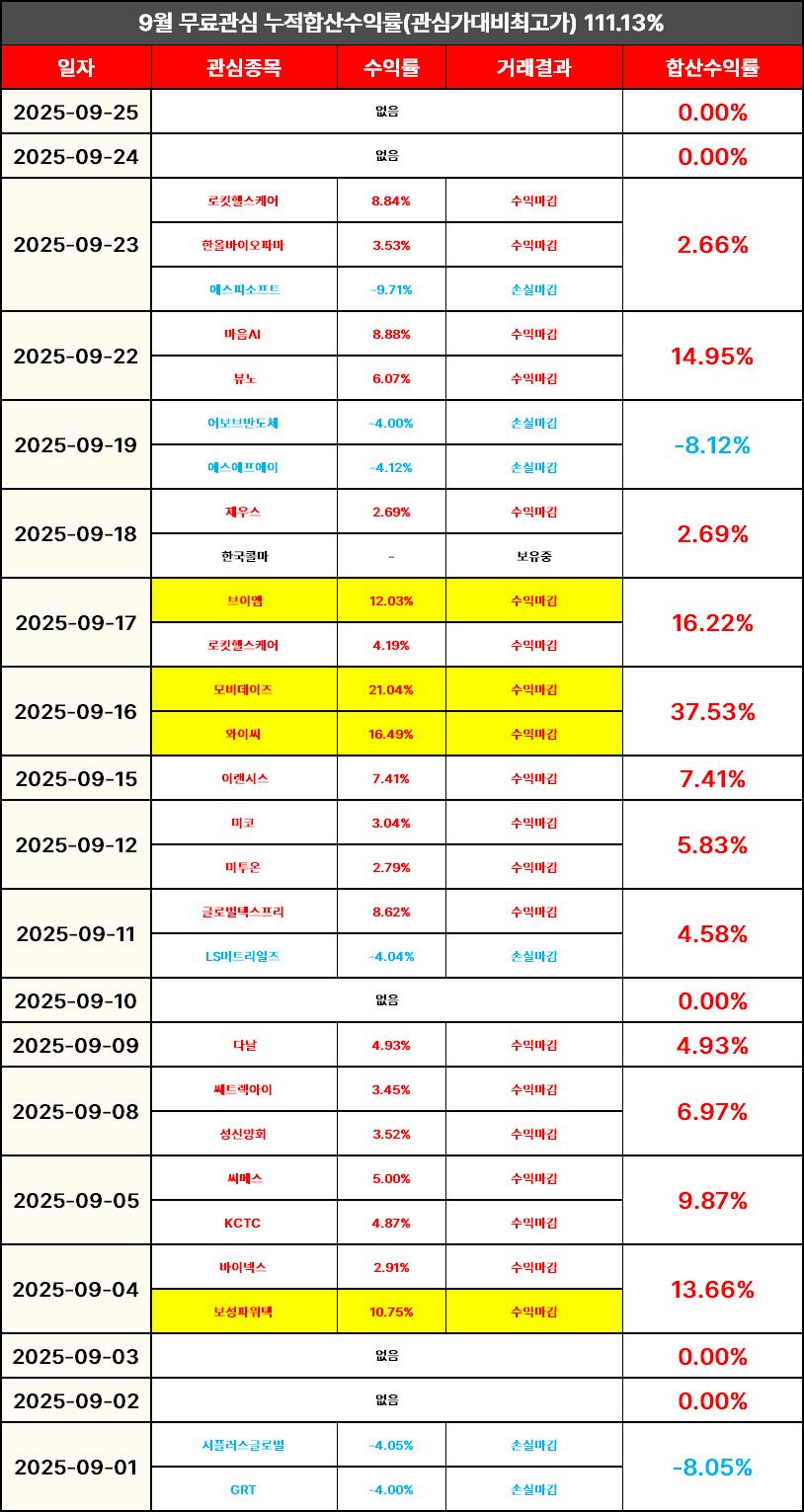 장 마감 후 무료관심종목 결산내역 올려드리도록 하겠습니다.