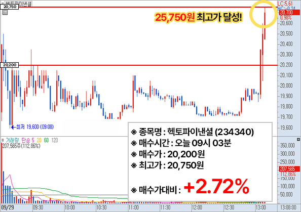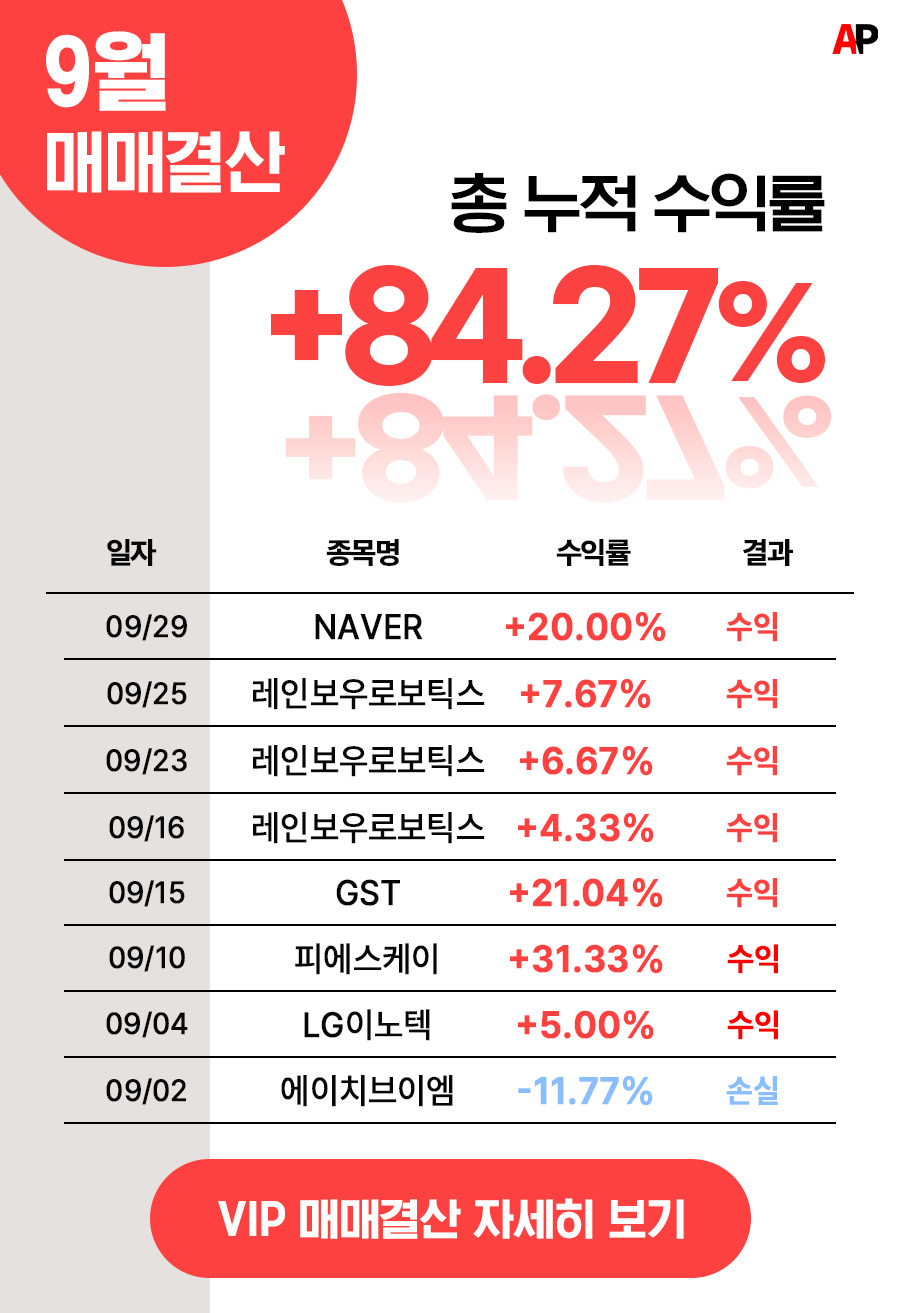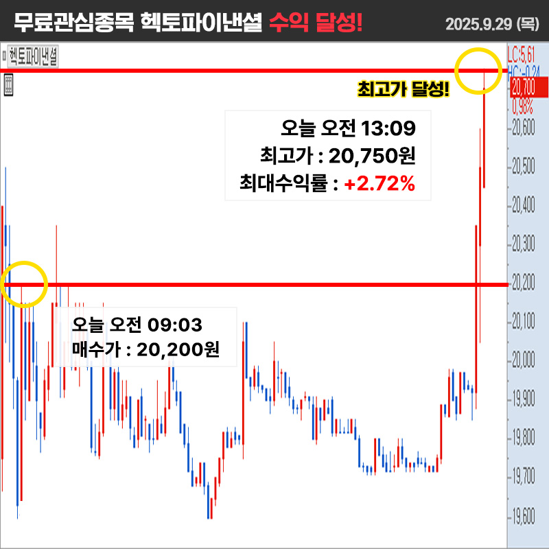 9월 29일 월요일 무료관심종목+2.72%(1전/1승)