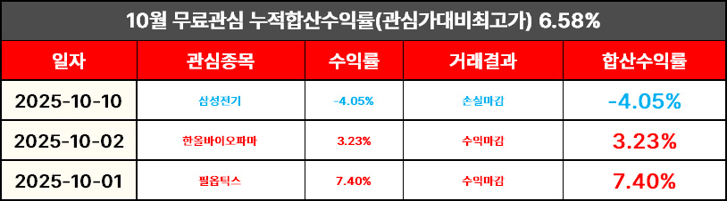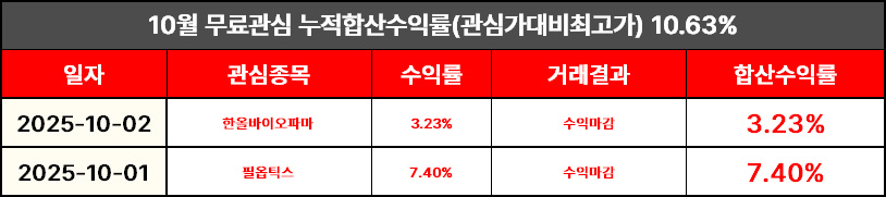 장 마감 후 무료관심종목 결산내역 올려드리도록 하겠습니다.
