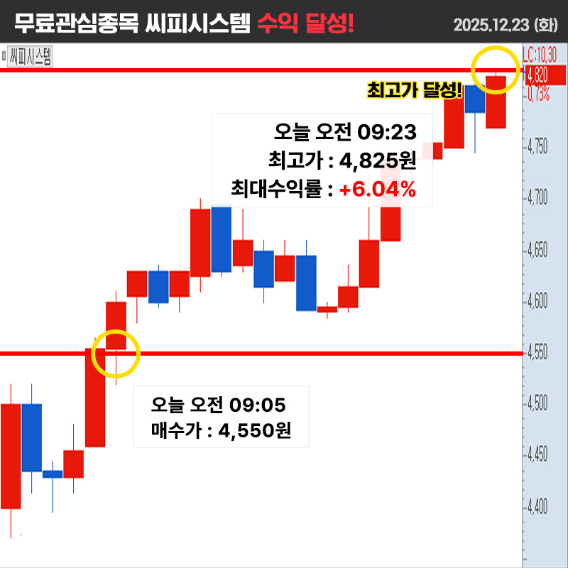 무료관심주 씨피시스템 1차목표가 달성 !!
