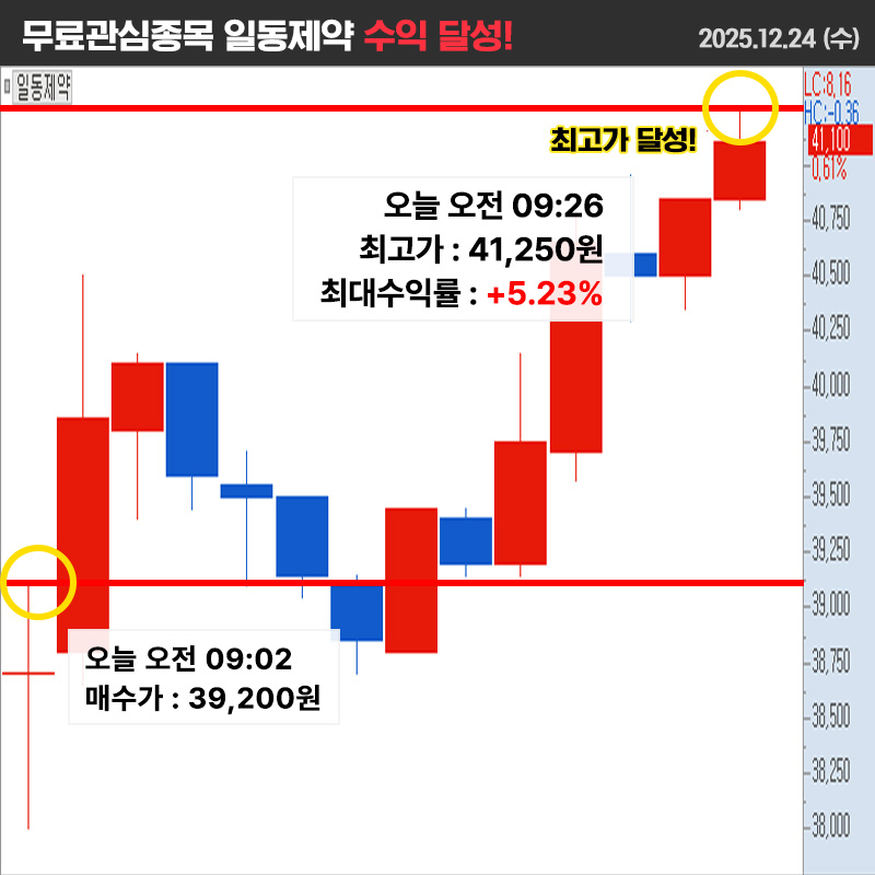 관심 매수가 39,200원 제시해 드렸고 관심 매수가 대비 +4.46% 상승했습니다.