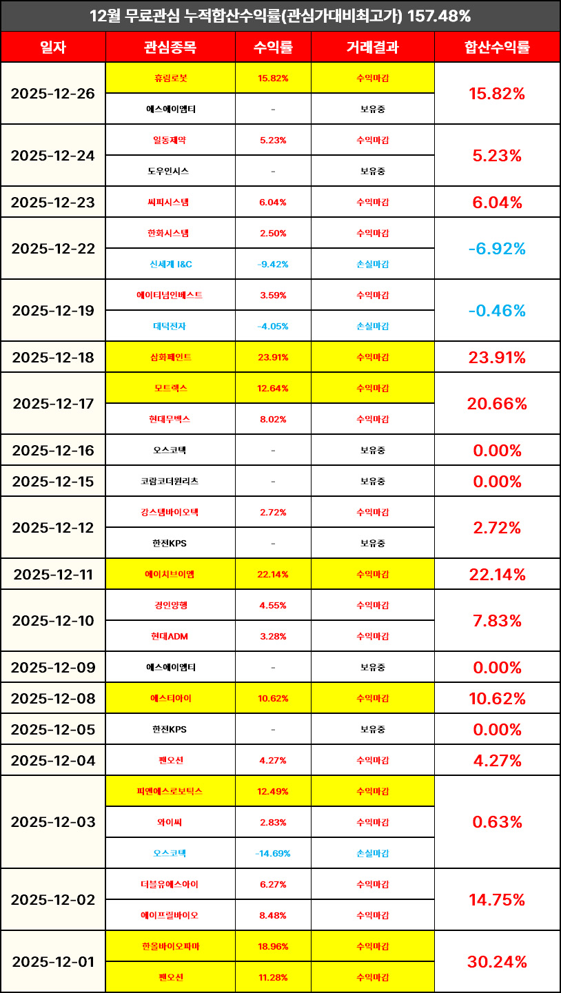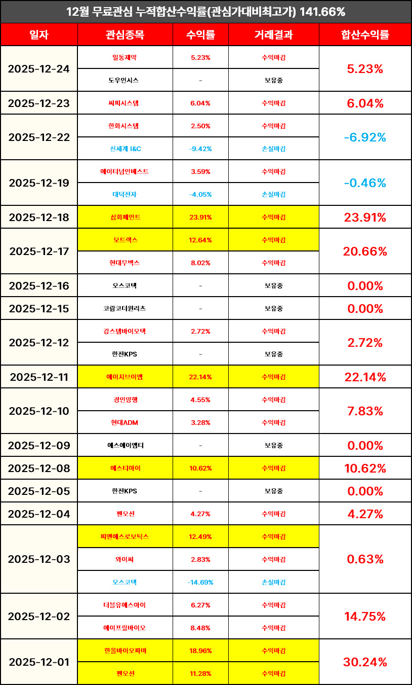 장 마감 후 무료관심종목 결산내역 올려드리도록 하겠습니다.