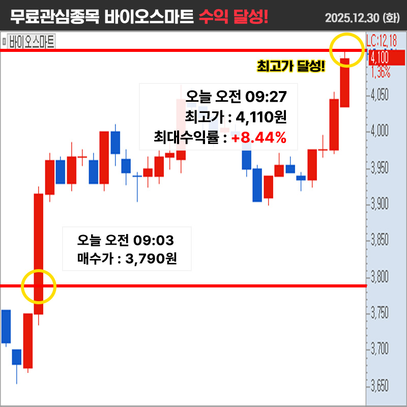 무료관심주 바이오스마트 1차목표가 달성 !!
