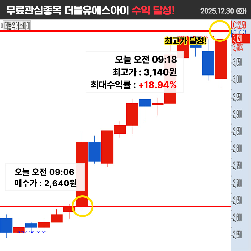 관심 매수가 2,640원 제시해 드렸고 관심 매수가 대비 +18.94% 상승했습니다.