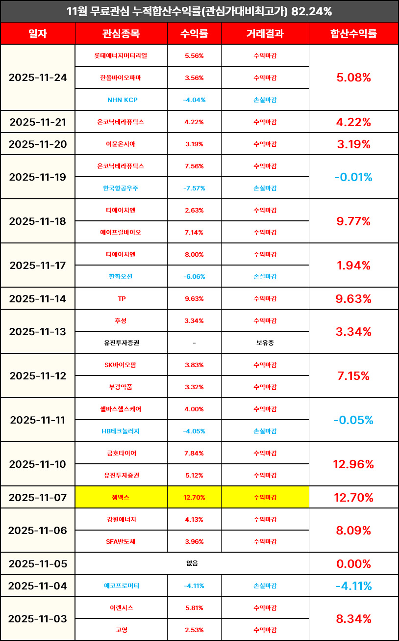 장 마감 후 무료관심종목 결산내역 올려드리도록 하겠습니다.