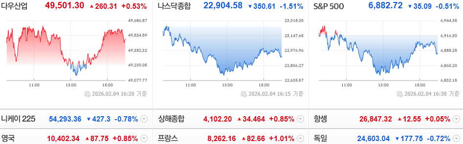 미국 증시는 기술주 중심의 매도세가 이어지며 혼조세로 마감했습니다.