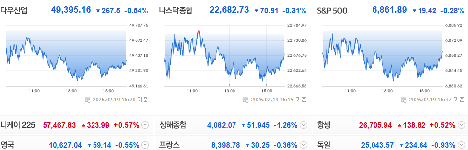 김용재소장님님의 댓글 김용재소장님 26-02-20 07:50 [美 증시 특징 종목 & 섹터]옥시덴털 페트롤리엄 OXY +9.38% - 4Q25 실적, 주당순익 컨센 상회- 화학 부문매각 대금을 활용해 핵심 부채를 150억 달러 이하로 줄이는 데 성공슈퍼마이크로컴퓨터 SMCI +8.25%- 13F 공시상, 뱅가드의 대규모 지분매입- 다음 분기 긍정적인 가이던스부킹홀딩스 BKNG -6.15%- 2026년에 생성형 AI 도입에 따라 기존 예산보다 7억 달러를 추가로 재투자- 단기 마진 훼손 우려금 섹터 강세- 지정학적리스크 점화- 인플레이션 우려자동차부품 섹터 약세- 주요 교역국에 대해 자동차 및 부품 관세를 기존 15%에서 25%로 다시 인상하겠다는 신호- 수입 부품에 의존하는 업체들의 비용 부담이 급증할 것이라는 전망 <p style="box-sizing: border-box; word-break: keep-all; font-size: medium; text-size-adjust: none; color: rgb(53, 53, 53); font-family: NotoSansCJKkr, NanumGothic, "Malgun Gothic", Dotum, sans-serif; letter-spacing: -0.56px;"><b style="box-sizing: border-box; margin: 0px; padding: 0px; font-size: 14.6667px; letter-spacing: -0.56px; background-color: rgb(255, 255, 255);">[美 증시 특징 종목 & 섹터]</b></p><div><b style="box-sizing: border-box; margin: 0px; padding: 0px; font-size: 14.6667px; letter-spacing: -0.56px; background-color: rgb(255, 255, 255);"><br></b></div><div><b style="box-sizing: border-box; margin: 0px; padding: 0px; font-size: 14.6667px; letter-spacing: -0.56px; background-color: rgb(255, 255, 255);"><br></b></div><div><span style="box-sizing: border-box; margin: 0px; padding: 0px; background-color: rgb(255, 255, 255);"><span style="font-size: 14.6667px; letter-spacing: -0.56px;"><b>옥시덴털 페트롤리엄 OXY <span style="color: rgb(255, 0, 0);">+9.38%</span></b> </span></span></div><div><span style="font-size: 14.6667px; letter-spacing: -0.56px;"><br></span></div><div><span style="font-size: 14.6667px; letter-spacing: -0.56px;">- 4Q25 실적, 주당순익 컨센 상회</span></div><div><span style="font-size: 14.6667px; letter-spacing: -0.56px;">- 화학 부문매각 대금을 활용해 핵심 부채를 150억 달러 이하로 줄이는 데 성공</span></div><div><span style="font-size: 14.6667px; letter-spacing: -0.56px;"><br></span></div><div><span style="font-size: 14.6667px; letter-spacing: -0.56px;"><br></span></div><div><span style="font-size: 14.6667px; letter-spacing: -0.56px;"><br></span></div><div><span style="font-size: 14.6667px; letter-spacing: -0.56px;"><b>슈퍼마이크로컴퓨터 SMCI <span style="color: rgb(255, 0, 0);">+8.25%</span></b></span></div><div><span style="font-size: 14.6667px; letter-spacing: -0.56px;"><br></span></div><div><span style="font-size: 14.6667px; letter-spacing: -0.56px;">- 13F 공시상, 뱅가드의 대규모 지분매입</span></div><div><span style="font-size: 14.6667px; letter-spacing: -0.56px;">- 다음 분기 긍정적인 가이던스</span></div><div><span style="font-size: 14.6667px; letter-spacing: -0.56px;"><br></span></div><div><span style="font-size: 14.6667px; letter-spacing: -0.56px;"><br></span></div><div><span style="font-size: 14.6667px; letter-spacing: -0.56px;"><br></span></div><div><span style="font-size: 14.6667px; letter-spacing: -0.56px;"><b>부킹홀딩스 BKNG <span style="color: rgb(0, 117, 200);">-6.15%</span></b></span></div><div><span style="font-size: 14.6667px; letter-spacing: -0.56px;"><br></span></div><div><span style="font-size: 14.6667px; letter-spacing: -0.56px;">- 2026년에 생성형 AI 도입에 따라 기존 예산보다 7억 달러를 추가로 재투자</span></div><div><span style="font-size: 14.6667px; letter-spacing: -0.56px;">- 단기 마진 훼손 우려</span></div><div><span style="font-size: 14.6667px; letter-spacing: -0.56px;"><br></span></div><div><span style="font-size: 14.6667px; letter-spacing: -0.56px;"><br></span></div><div><span style="font-size: 14.6667px; letter-spacing: -0.56px;"><br></span></div><div><span style="font-size: 14.6667px; letter-spacing: -0.56px;"><b>금 섹터 <span style="color: rgb(255, 0, 0);">강세</span></b></span></div><div><span style="font-size: 14.6667px; letter-spacing: -0.56px;"><br></span></div><div><span style="font-size: 14.6667px; letter-spacing: -0.56px;">- 지정학적리스크 점화</span></div><div><span style="font-size: 14.6667px; letter-spacing: -0.56px;">- 인플레이션 우려</span></div><div><span style="font-size: 14.6667px; letter-spacing: -0.56px;"><br></span></div><div><span style="font-size: 14.6667px; letter-spacing: -0.56px;"><br></span></div><div><span style="font-size: 14.6667px; letter-spacing: -0.56px;"><br></span></div><div><span style="font-size: 14.6667px; letter-spacing: -0.56px;"><b>자동차부품 섹터 <span style="color: rgb(0, 117, 200);">약세</span></b></span></div><div><span style="font-size: 14.6667px; letter-spacing: -0.56px;"><br></span></div><div><span style="font-size: 14.6667px; letter-spacing: -0.56px;">- 주요 교역국에 대해 자동차 및 부품 관세를 기존 15%에서 25%로 다시 인상하겠다는 신호</span></div><div><span style="font-size: 14.6667px; letter-spacing: -0.56px;">- 수입 부품에 의존하는 업체들의 비용 부담이 급증할 것이라는 전망</span></div>