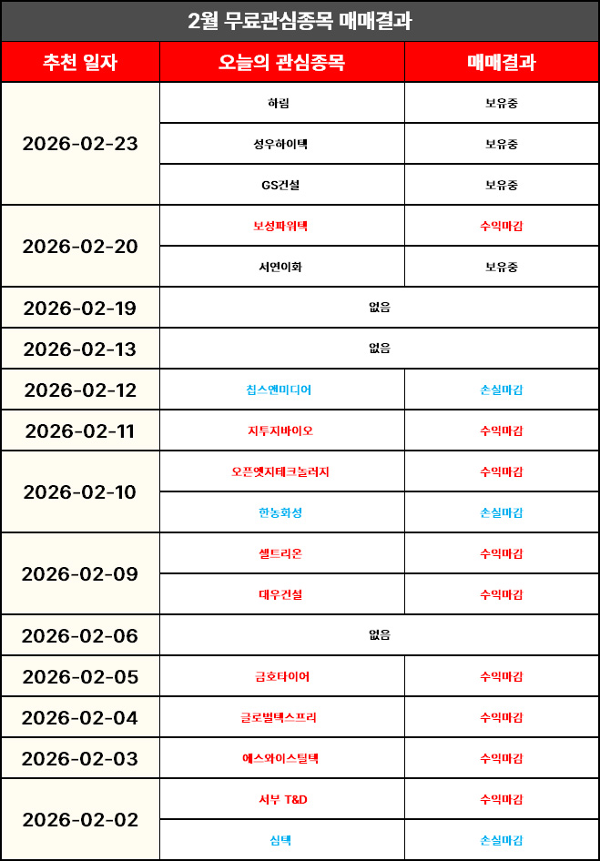 장 마감 후 무료관심종목 결산내역 올려드리도록 하겠습니다.