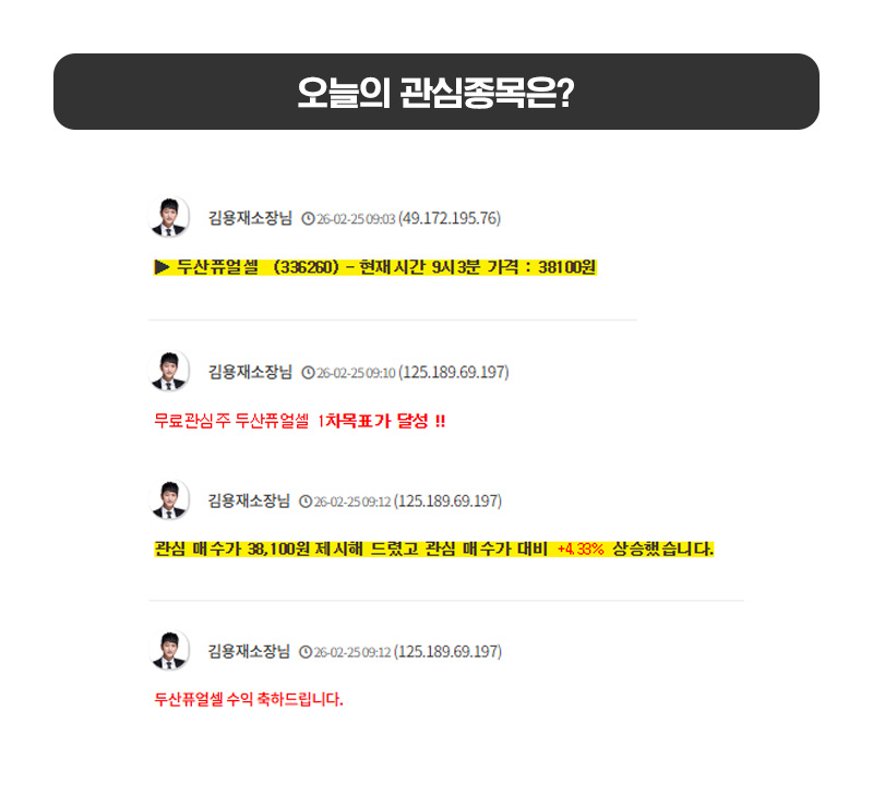 무료관심주 두산퓨얼셀 1차목표가 달성 !!