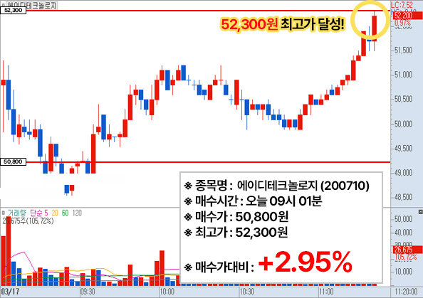 무료관심주 에이디테크놀로지 1차목표가 달성 !!
