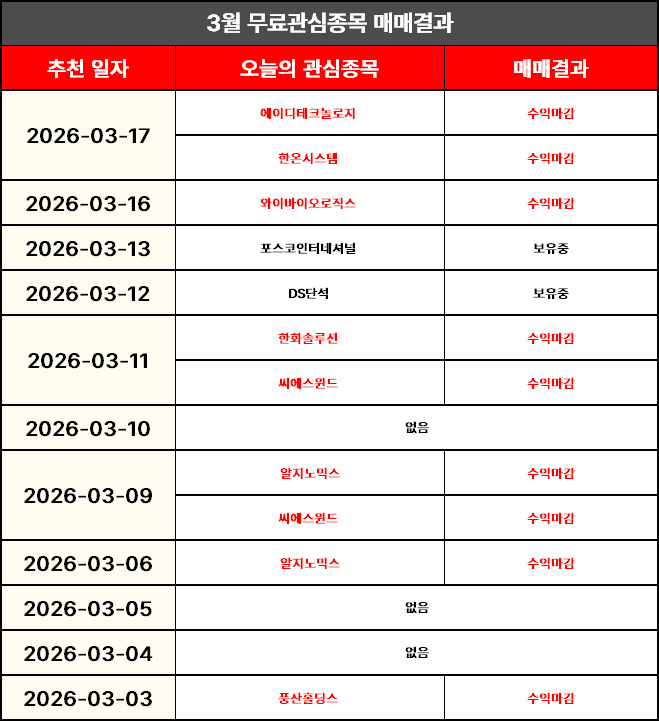 장 마감 후 무료관심종목 결산내역 올려드리도록 하겠습니다.
