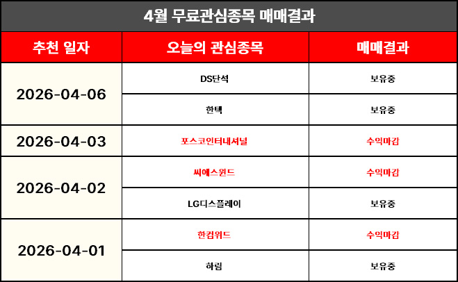 장 마감 후 무료관심종목 결산내역 올려드리도록 하겠습니다.