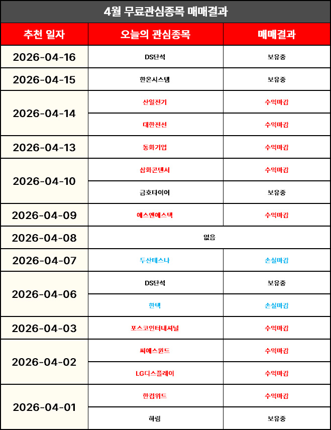 4월 16일 목요일 무료관심종목 (1전/1종목 보유중)