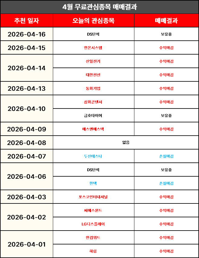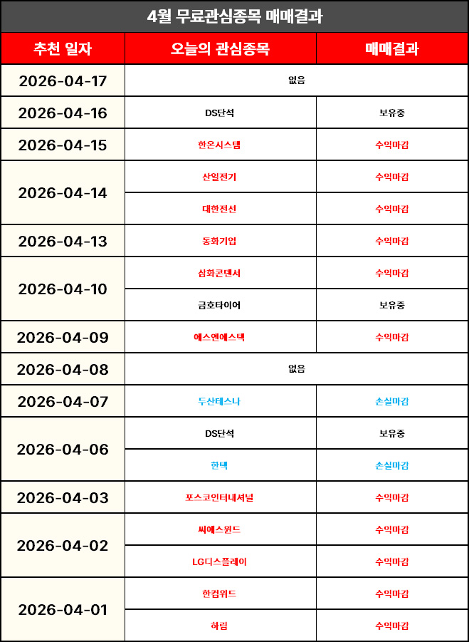 4월 1일 무료관심종목
