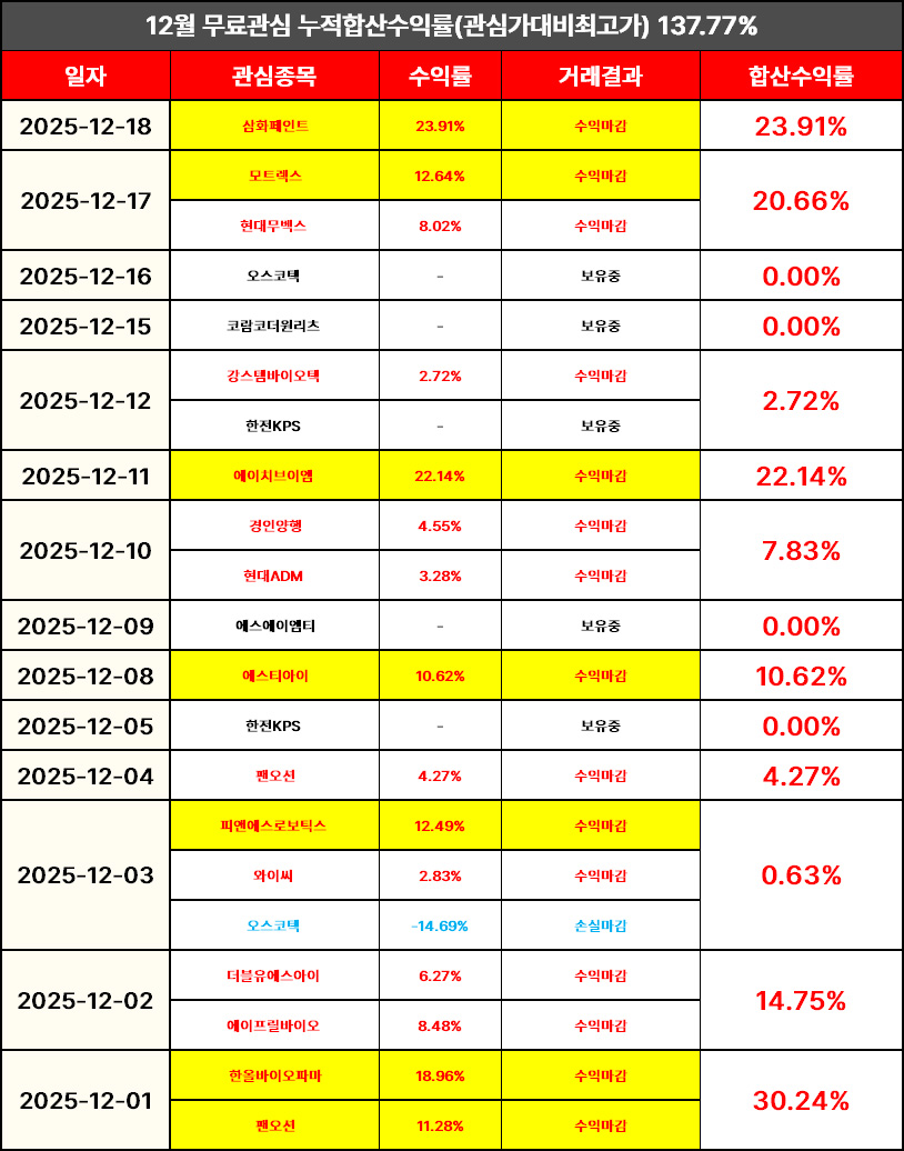 장 마감 후 무료관심종목 결산내역 올려드리도록 하겠습니다.