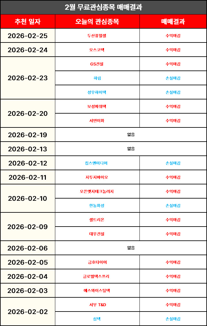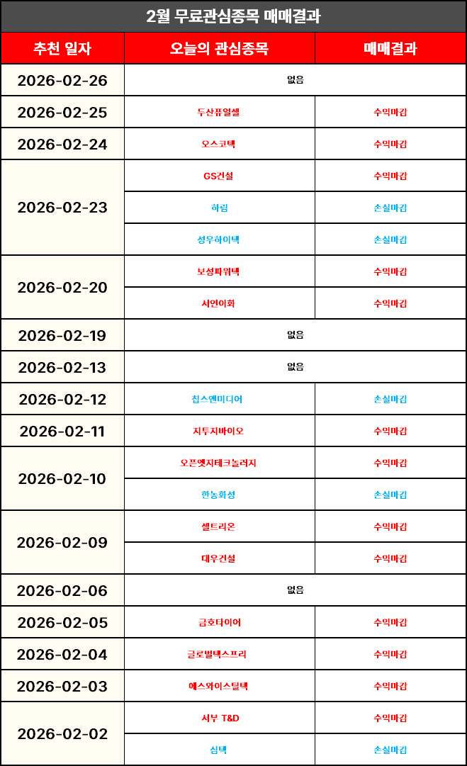 장 마감 후 무료관심종목 결산내역 올려드리도록 하겠습니다.