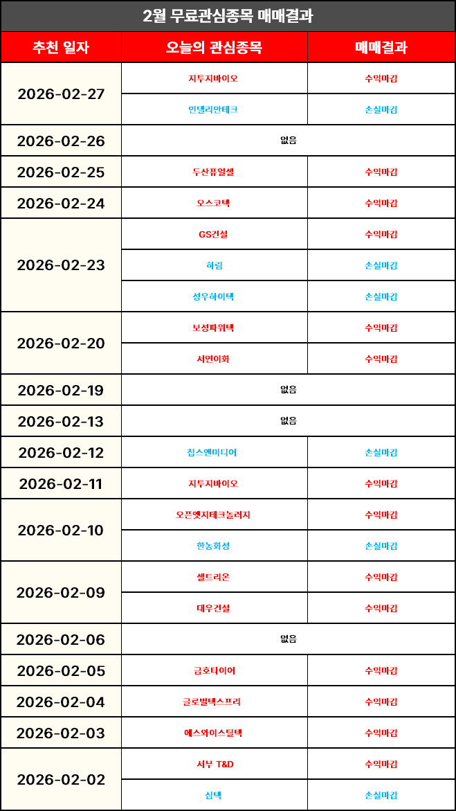 [금일 무료관심종목 결과 정리]