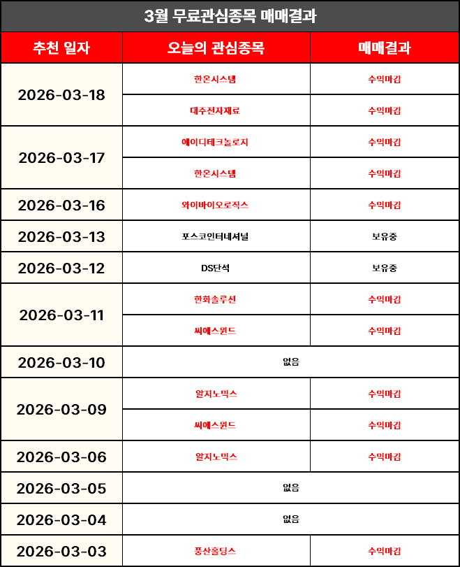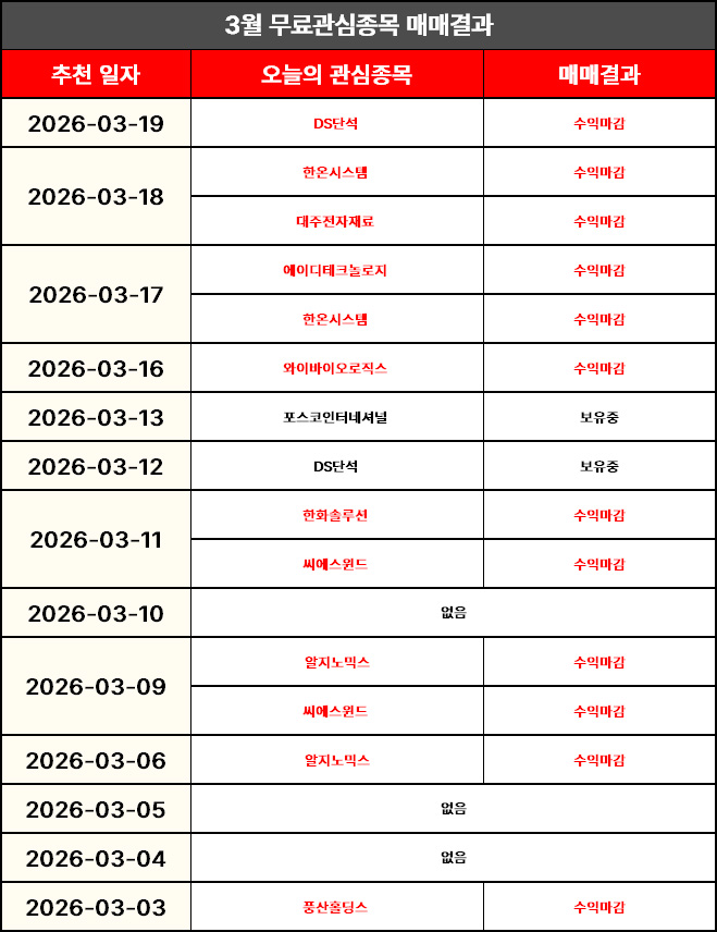 장 마감 후 무료관심종목 결산내역 올려드리도록 하겠습니다.