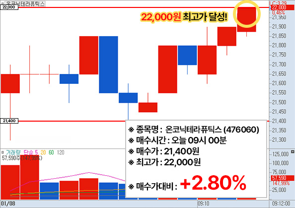▶ 온코닉테라퓨틱스 (476060) - 현재시간 9시00분 가격 : 21400원