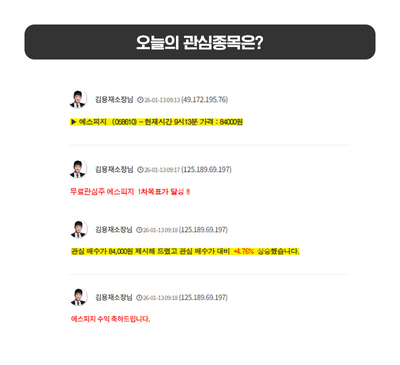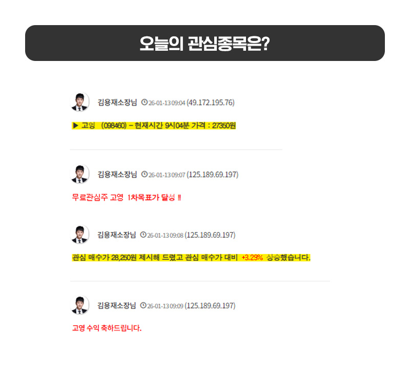 [금일 무료관심종목 결과 정리]