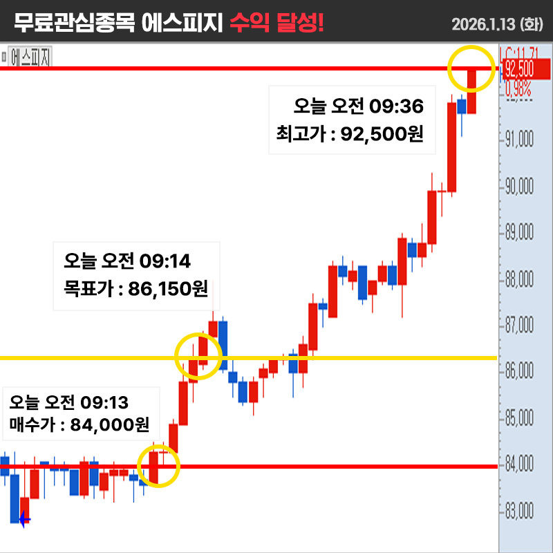 1월 13일 화요일 무료관심종목 (2전/2승)