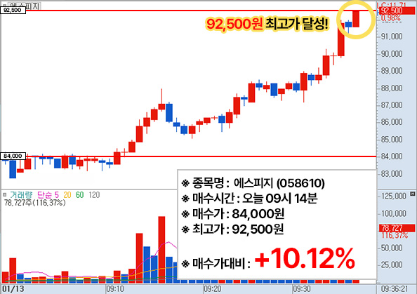 무료관심주 에스피지 1차목표가 달성 !!