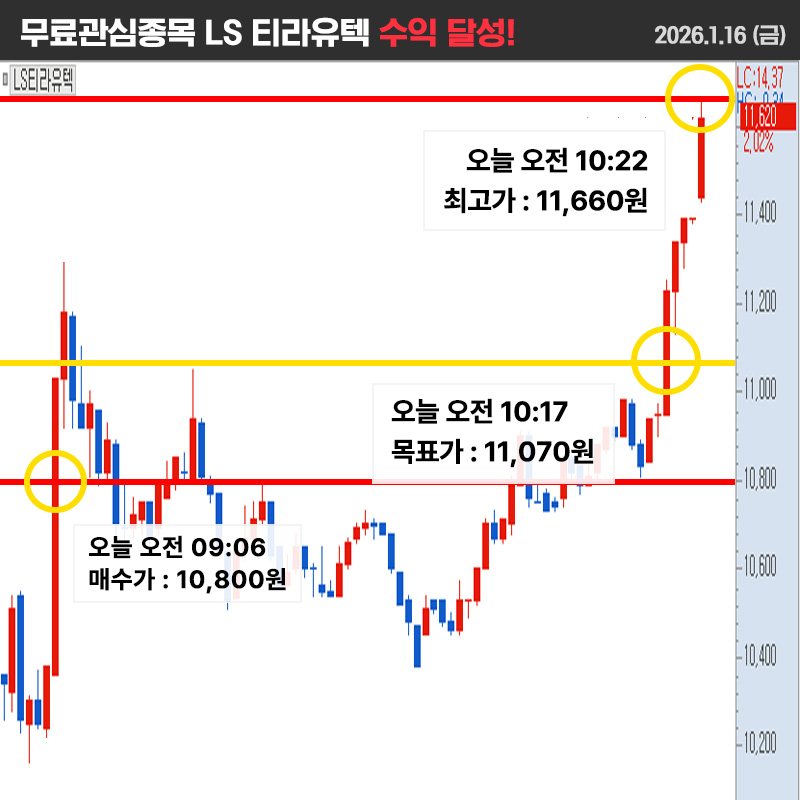 무료관심주 LS 티라유텍 1차목표가 달성 !!