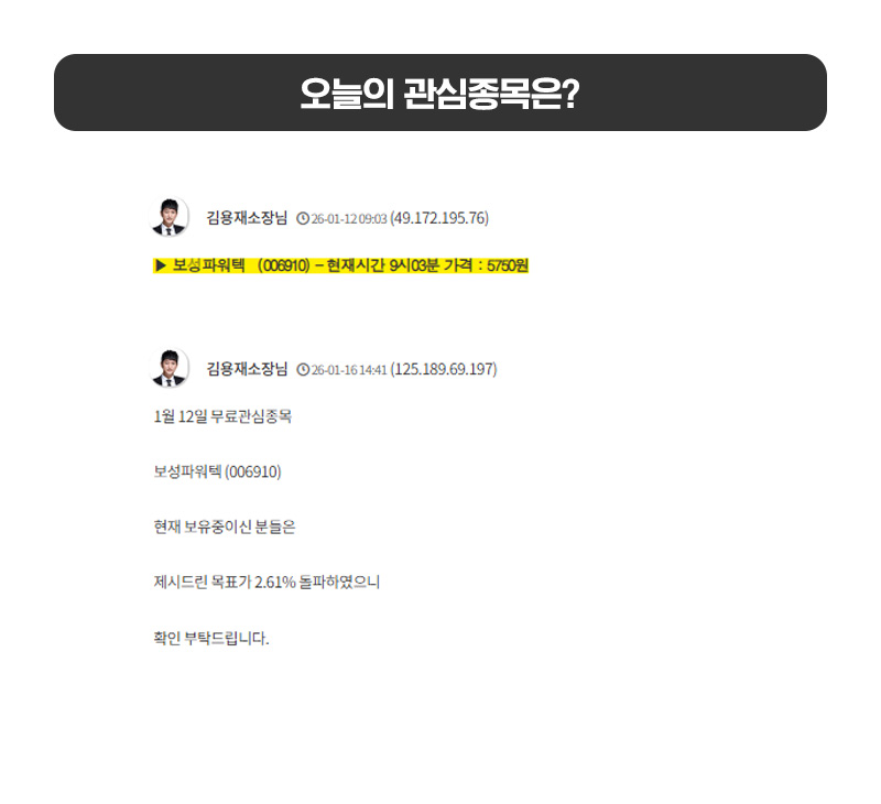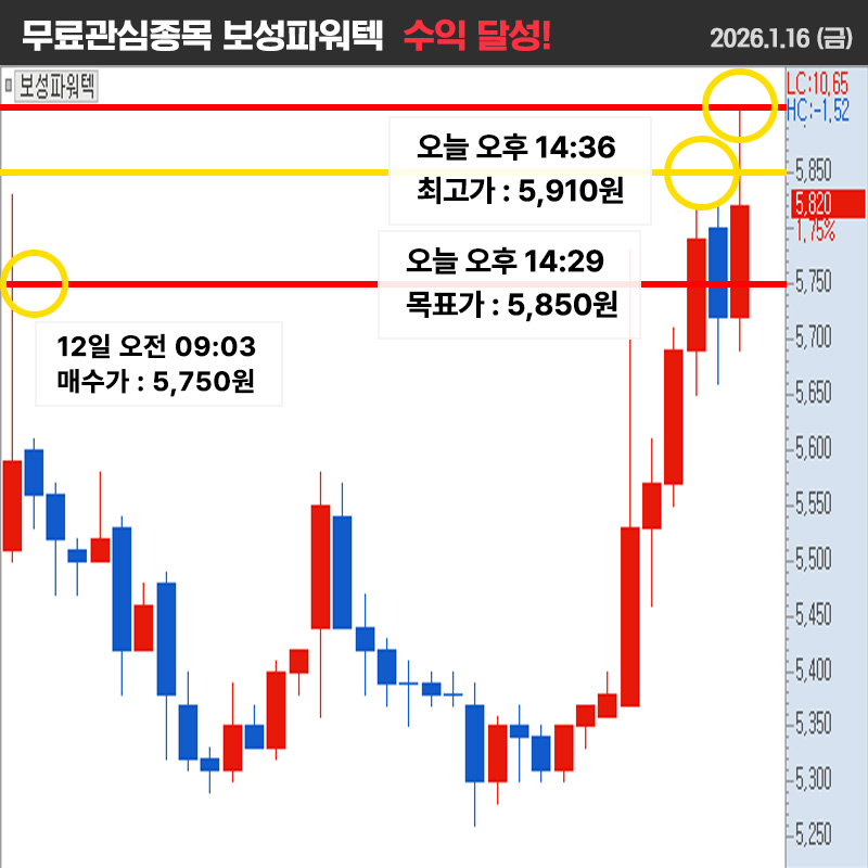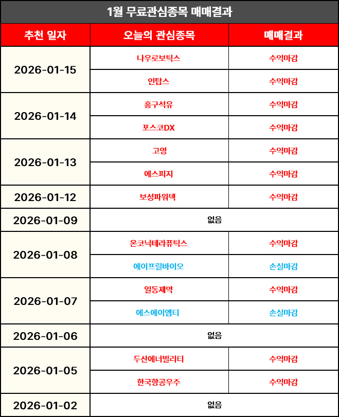 1월 16일 금요일 무료관심종목 (2전/2승)