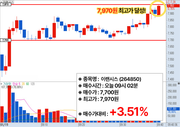 ▶ 이랜시스  (264850) - 현재시간 9시02분 가격 : 7700원