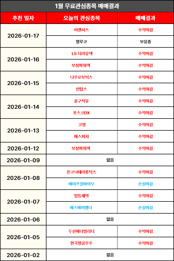 [금일 무료관심종목 결과 정리]